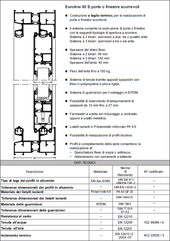 Serramenti scorrevoli in alluminio – profilo EL90 S